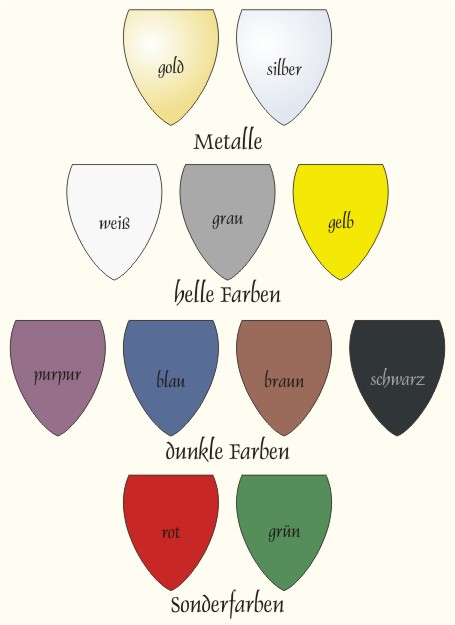 Auch die Farben, die für ein Wappen verwendet werden dürfen, sind genauestens festgelegt und in Klassen eingeteilt.
