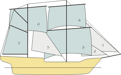 Die Taube fährt sieben Segel. Es sind dies Klüver (1), Binnenklüver (2), Großsegel (3), Großtoppsegel (4), Besantoppstagsegel (5), Besantoppsegel (6) und das Besansegel (7). Alles in allem ist sie achtzig Fuß lang, wovon der Rumpf zweiundsechzig Fuß ausmacht. Mittschiffs ist sie etwas über zwanzig Fuß breit. Bei einem Tiefgang von beinahe zehn Fuß erhebt sich ihr Großmast sechszig Fuß über das Wasser. Die Mannschaft von Kapitän Timalo Fischersohn besteht aus etwa dreißig Matrosen und Offizieren. Oft hat sie auf ihren Reisen zusätzlich Passagiere an Bord, doch dürfen diese nicht allzuviel Bequemlichkeit erwarten. Bewaffnet ist sie mit zwei kleinen Bug- sowie zwei Heckgeschützen. Ihr Kapitän wird sein schmuckes Schiff aber nur im äußersten Notfall in einem offenen Kampf riskieren. Ihre Stärke liegt eher in ihrer Wendigkeit und Geschwindigkeit, sowie in ihren herausragenden Eigenschaften am Wind.